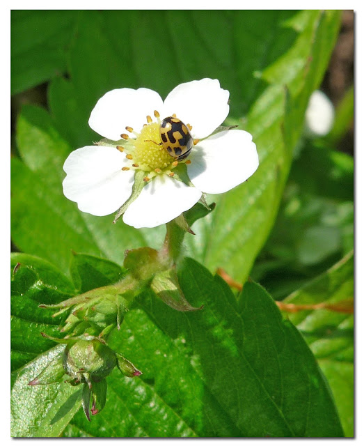 three 14-spot Ladybirds (Propylea 14-punctata) in the Elizabethan garden. They were small and pretty active, walking along leaves and over flowers ... and often disappearing just as I tried to click the shutter!