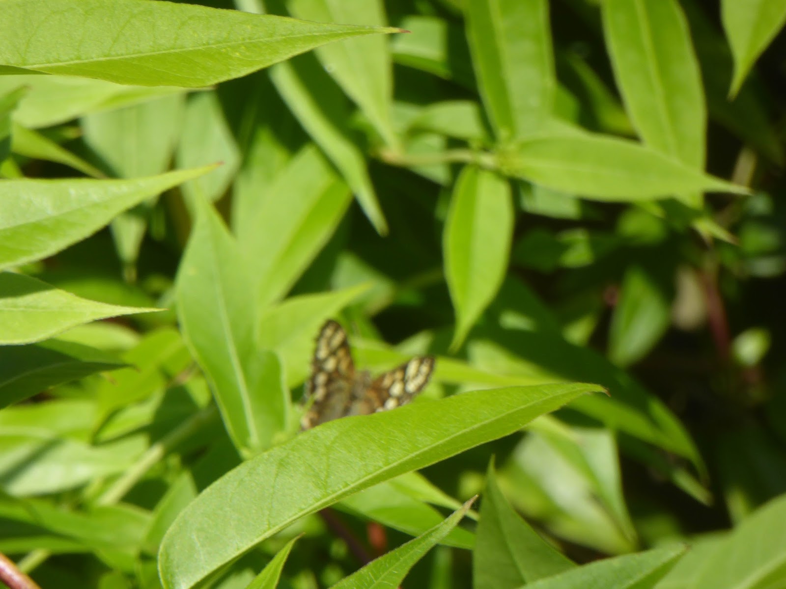 I was delighted this morning to find another garden first in the form of a Speckled Wood butterfly. I wish I could say it was the one above (which was in Wicken Fen some time ago), but the butterfly was too quick for me today, and all I have as proof of its presence is the shaky record shot below. My hope, of course, is that more may follow.